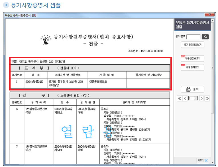 ▣ 부동산 등기부 유형 안내 바로가기
